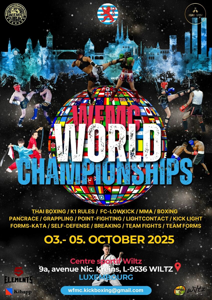 6 Combattants du Bushido FCK vont participer au championnat du monde WFMC au Luxembourg du 3 au 5 octobre 2025 ,force et détermination sera au RDV Osss